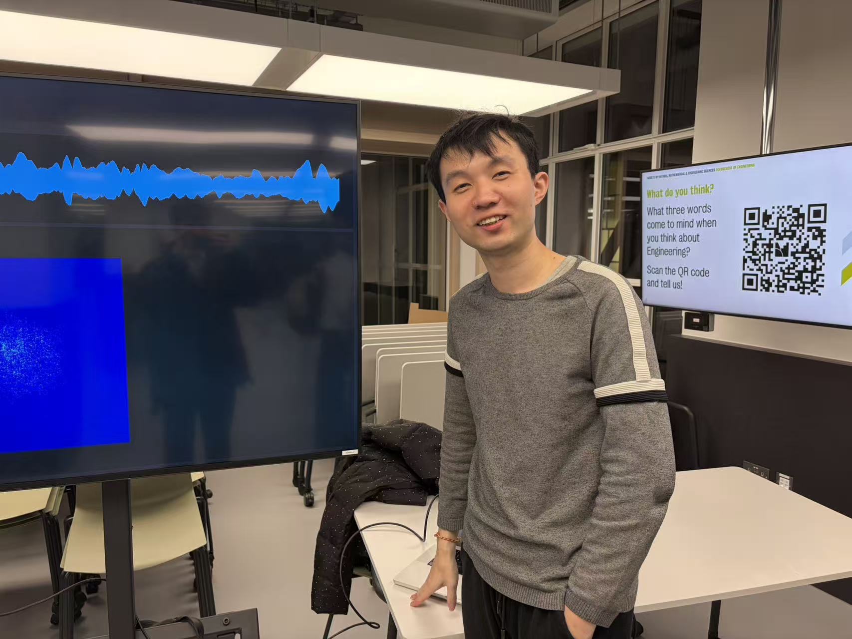 PhD candidate Wentao Hao hosted a stand at the Engineering Science Fair featuring a demonstration of Real-Time Symmetric Projection Attractor Reconstruction (SPAR-RT) visualisation of music and sound.